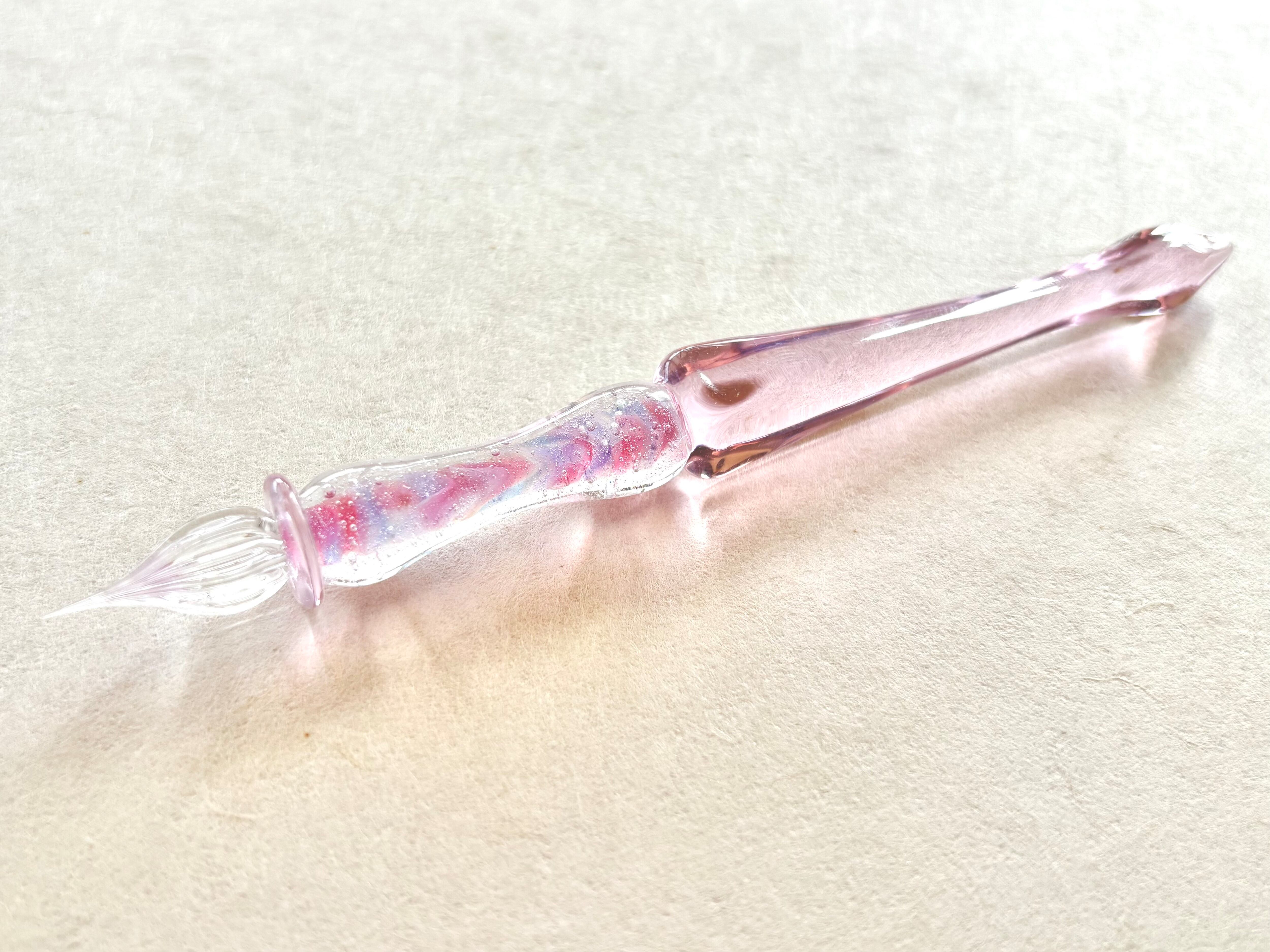 さまざまな色の粒の折り合いが可愛らしいデザインのガラスペンです。