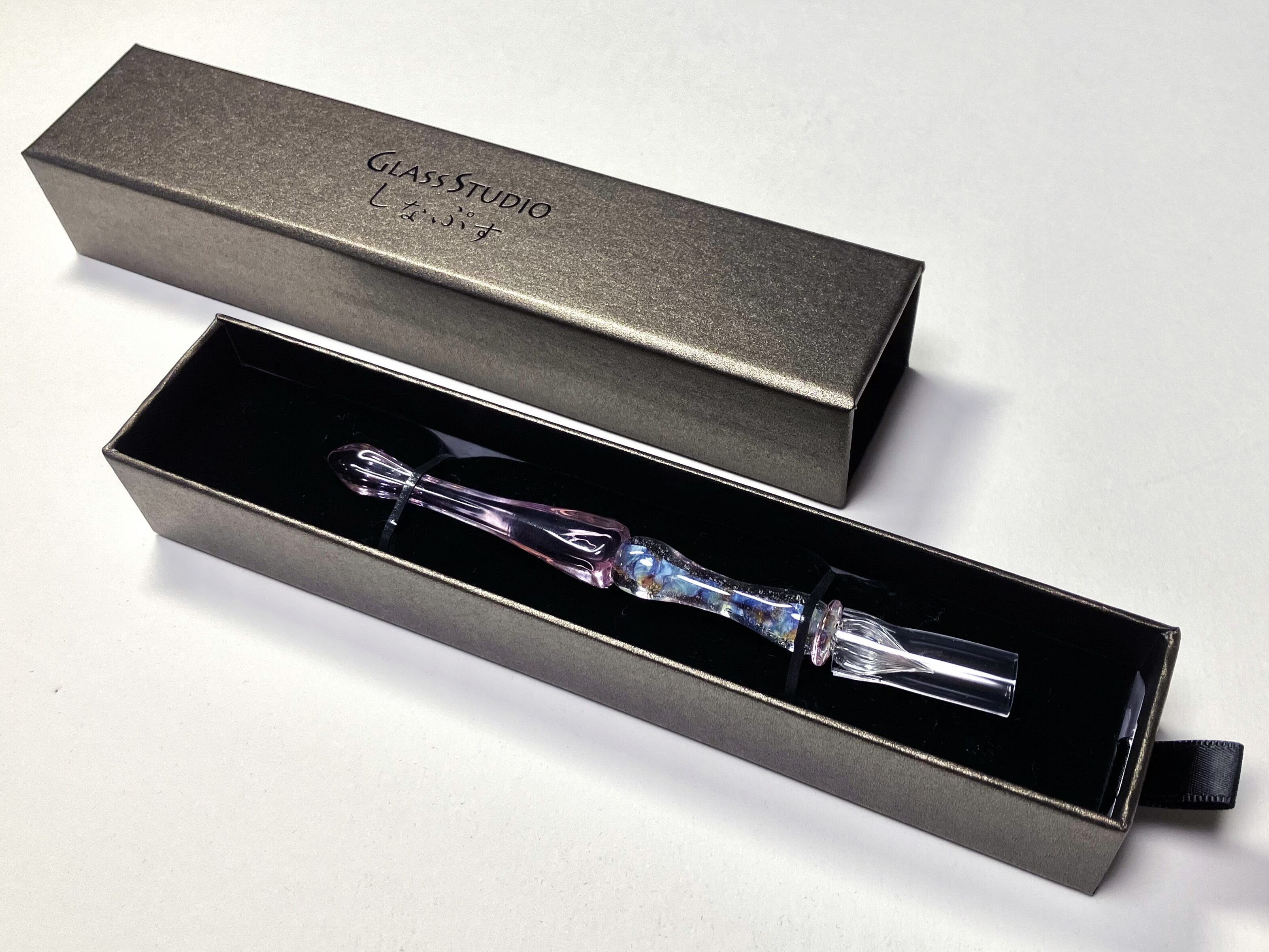 《GLASS STUDIOしなぷす》ロゴ入りの紙箱にお入れしてお届けいたします。