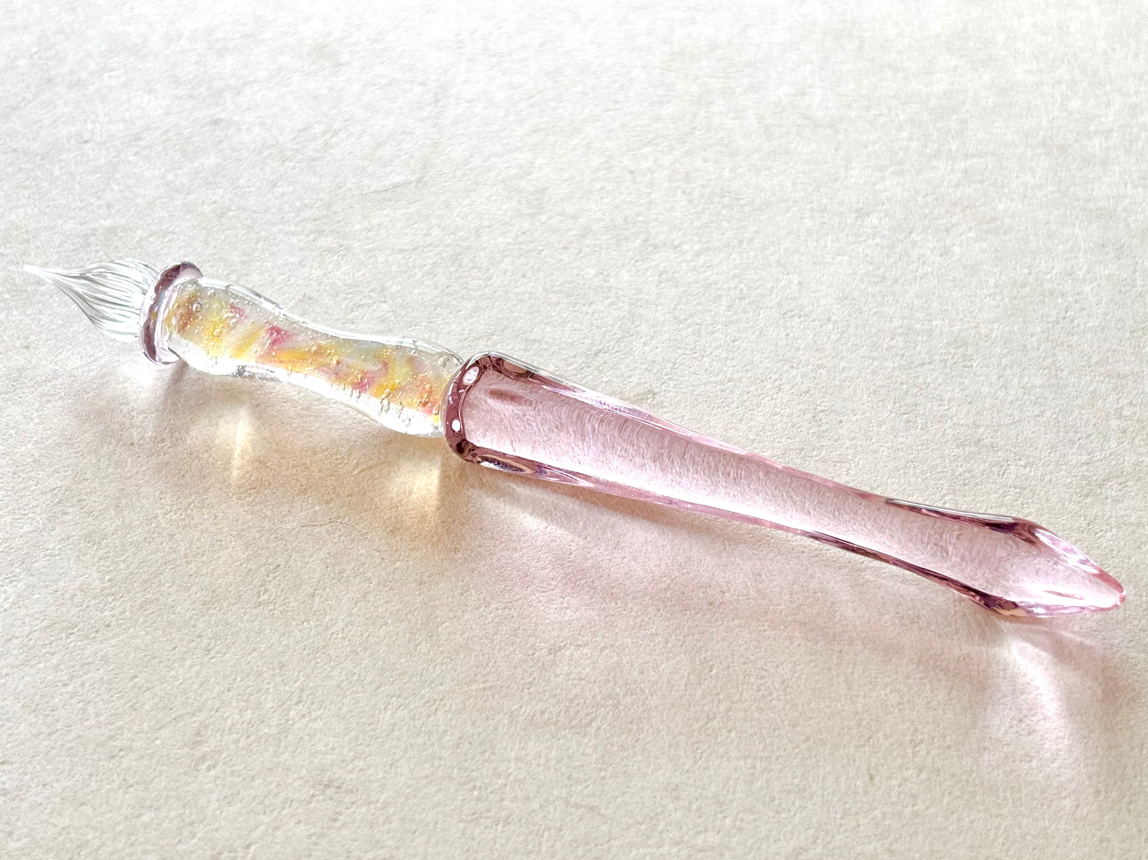 さまざまな色の粒の折り合いが可愛らしいデザインのガラスペンです。