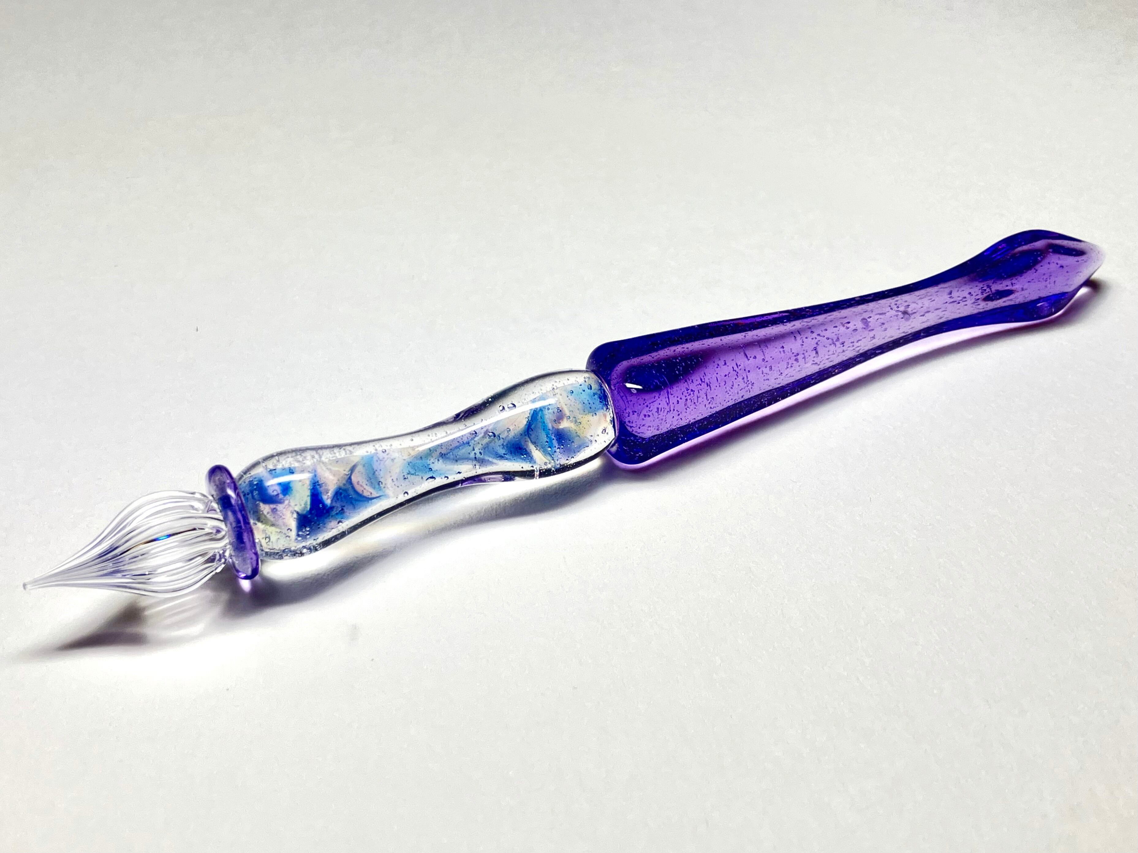 さまざまな色の粒の折り合いが可愛らしいデザインのガラスペンです。